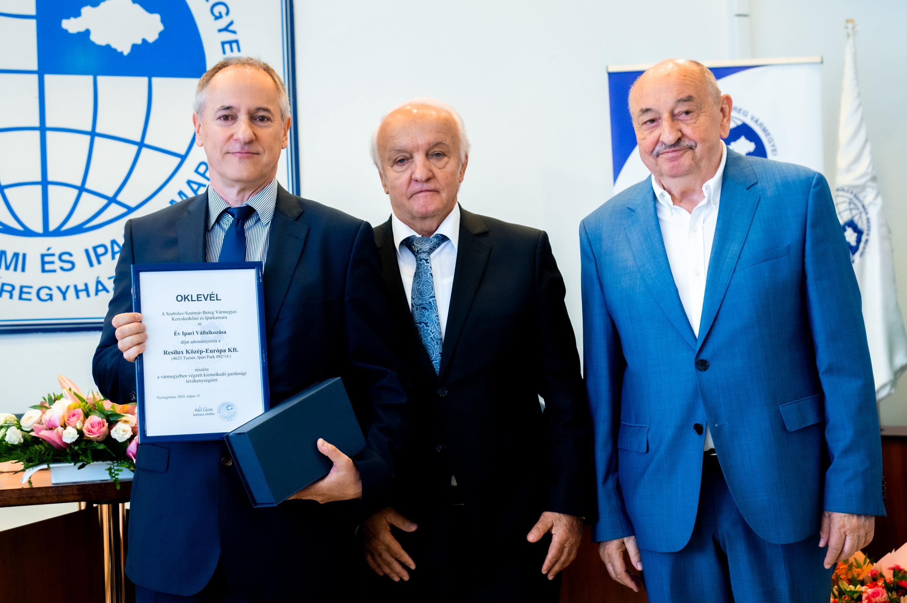 Attila Galambos, plant manager of our Tuzsér factory, proudly accepted the 2023 "Industrial Enterprise of the Year" award and certificate on behalf of Resilux Central Europe Kft.