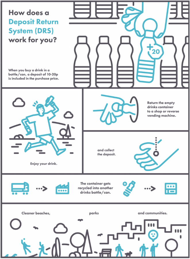 The Deposit Return Scheme (DRS) means that when consumers buy a product, they pay an extra deposit. This is returned to them when they bring the empty packaging back.